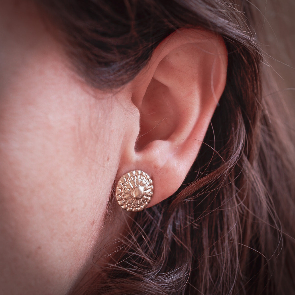 Aro redondo de tope en bronce inspirados en la cultura Maya.